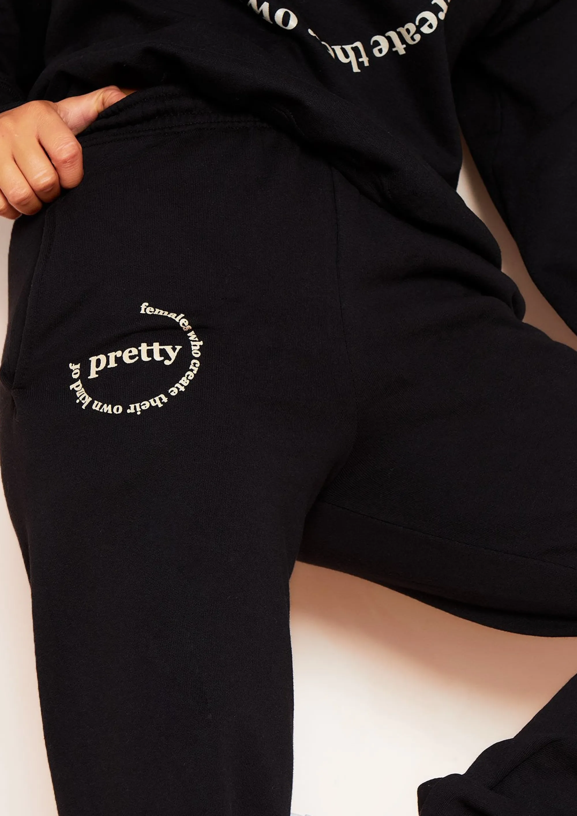 Our Madison Black Slogan Casual Joggers Are For All Of Our Cool, Laidback Missy Girls, A Casual Oversized Fitting Jogger With Cuffed Bottoms And Elasticated Waist, Complete With A Cute Af Pink Slogan Detailing On The Front. Matching Co-Ord Items Are Available To Complete The ‘Fit.