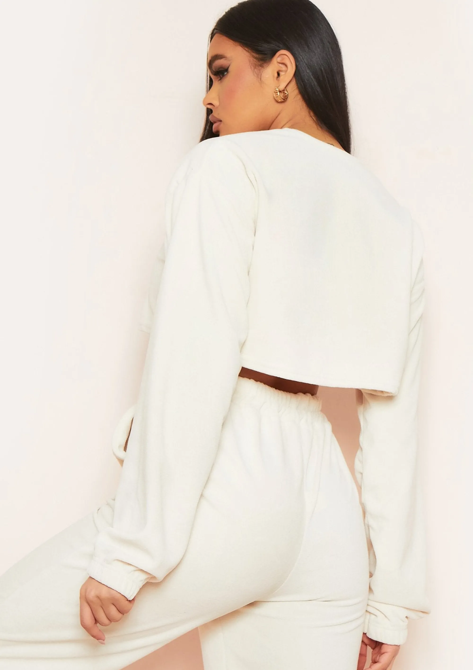 Elevate Your Off-Duty Look With This Must Have Sweater. Our Ebba Cream Cropped Velour Sweater Features Long Sleeves, Velvet Material Finished In A Cropped Length.