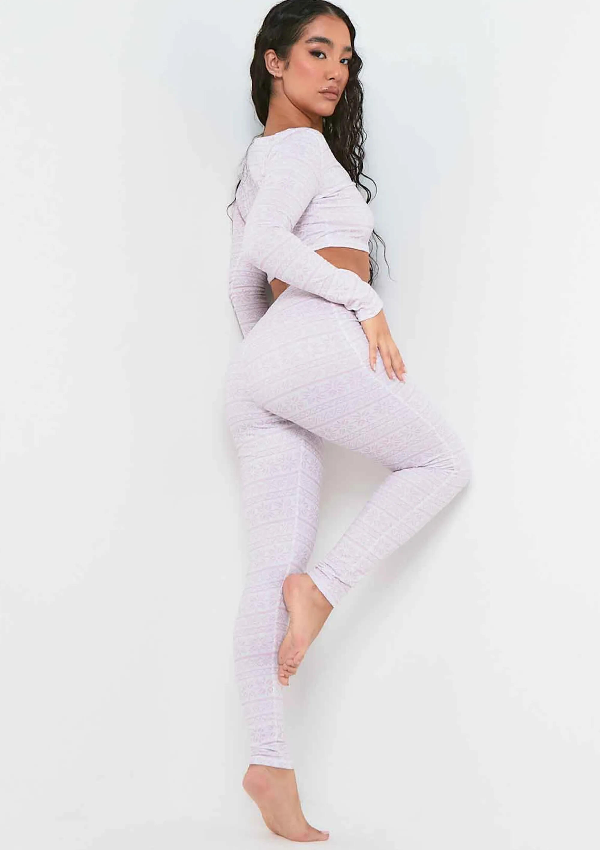It’s The Season To Get Cosy, Missy Girls! Our Elena Pink Christmas Print Legging Pyjama Set Is A Perfect Treat For Yourself Or Christmas Gift For Others, A Cosy Af Legging And Long Sleeve Crop Top Pyjama Set With A Festive Print.