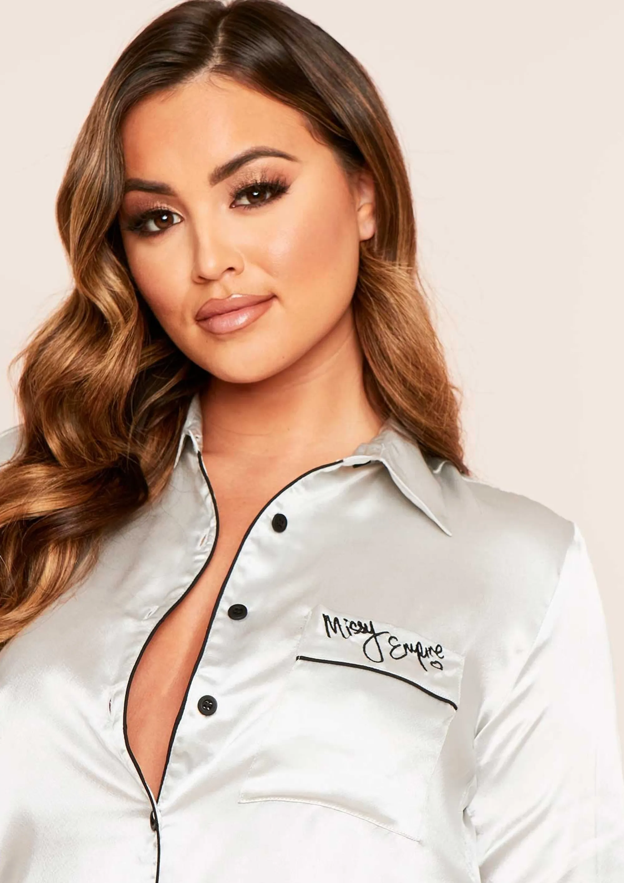 In A Satin Material, This Pj Set Is Perfect For Getting Your Beauty Sleep. Our Ella Grey Satin Missy Empire Wide Leg Pyjama Set Features Long Sleeves, Front Pocket, Piping Detailing Finished In An All Over Satin Fabric.