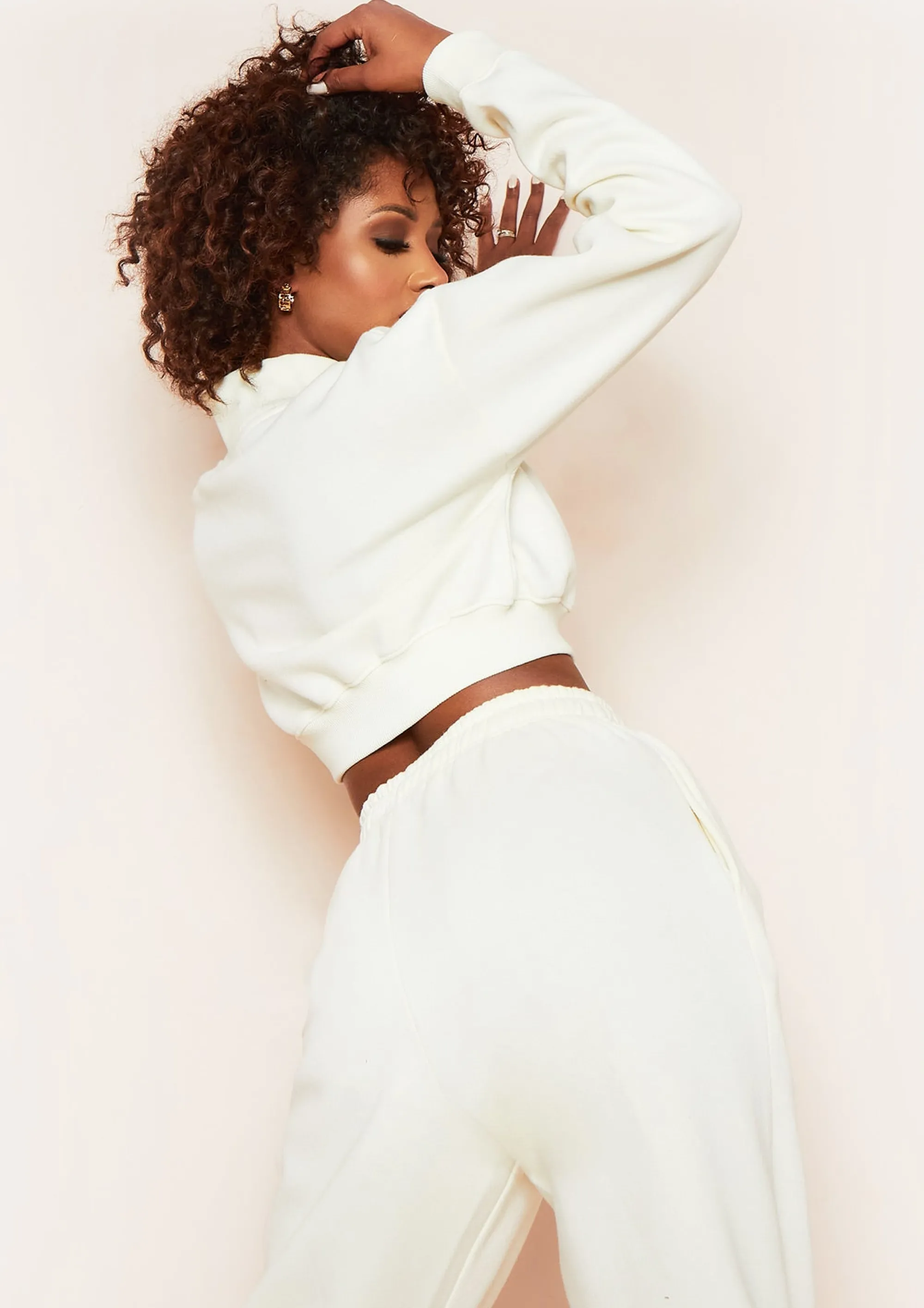 Our Kara Buttercream High Neck Embroidered Cropped Sweatshirt Is Perfect For Lounging On Your Days Off, A Cool Cropped Sweatshirt With A High Neckline, Looser Fit And An Embroidered Detailing For Extra Sass!