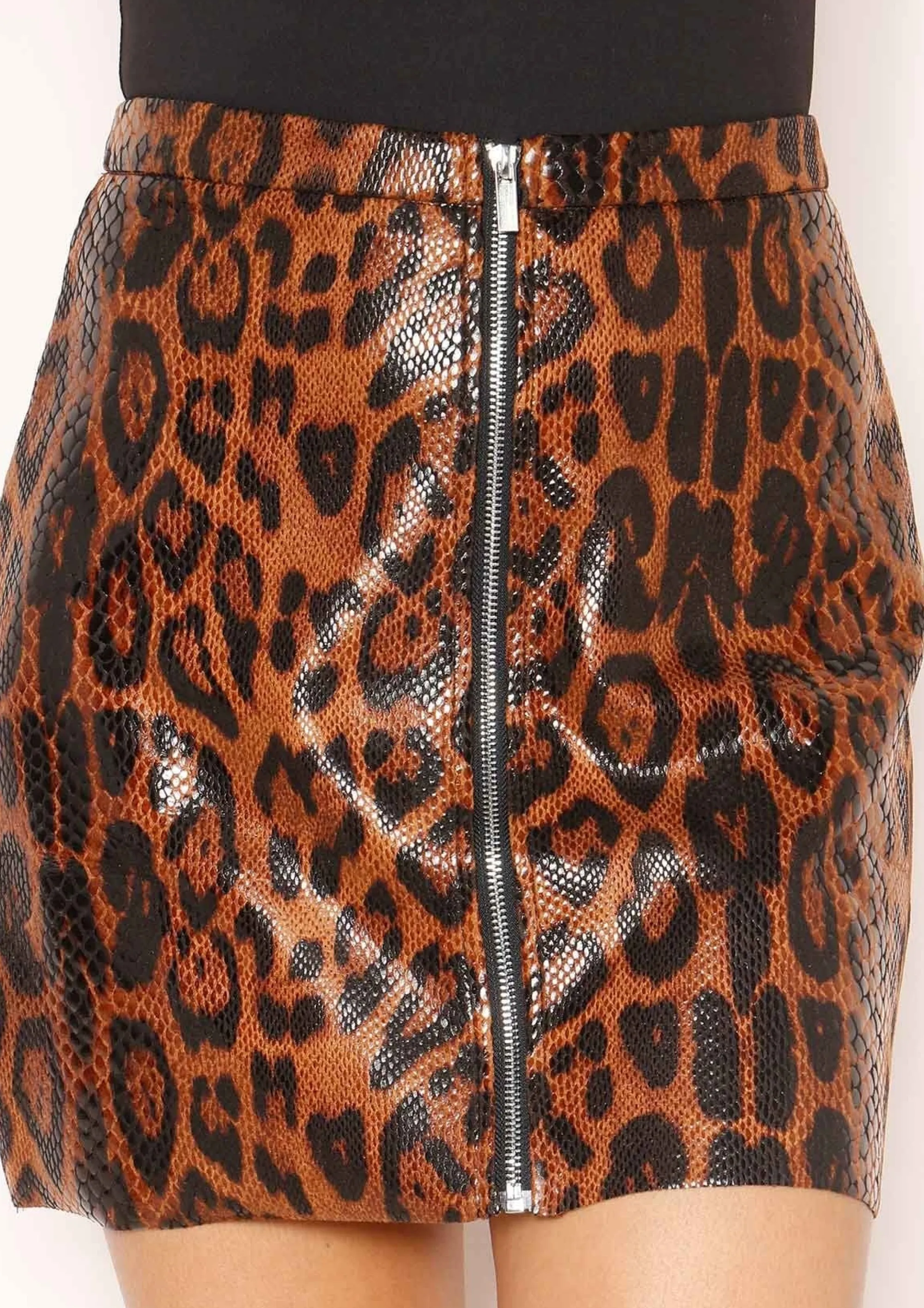 Leopard Print Feels! Our Poppy Leopard Print Zip Up Mini Skirt Features Leopard Print, Zip Up Detailing And Mini Length. Style With Bodysuit And Heels To Finish Off This Look.
